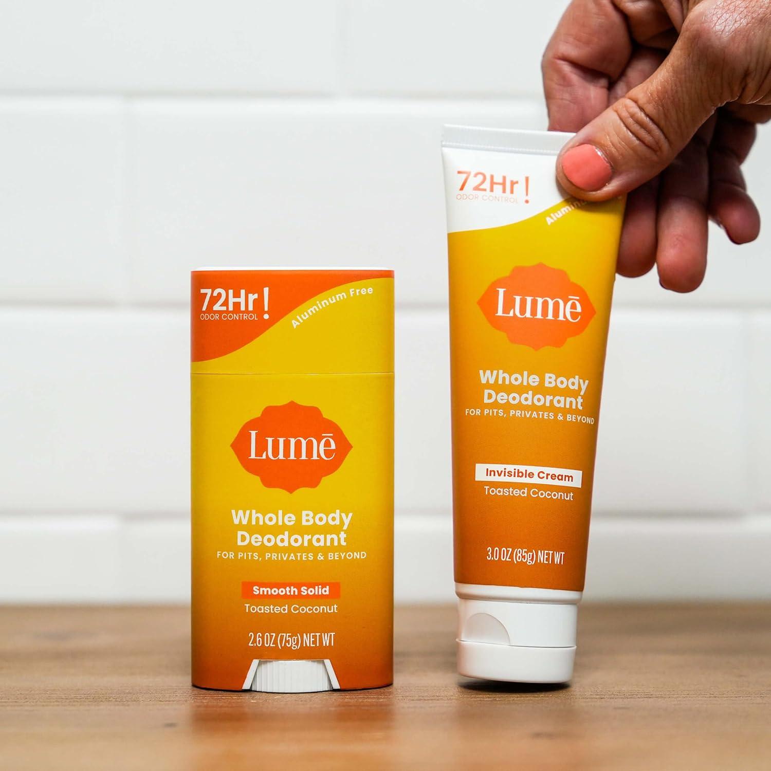 Lume Skin Care Gift Set for Women, Whole Body Deodorant Starter Pack – Smooth Solid Stick, Invisible Cream Tube, Acidified Body Wash Mini & Deodorant Wipes – Aluminum Free Odor Control (Peony Rose)(Toasted Coconut)