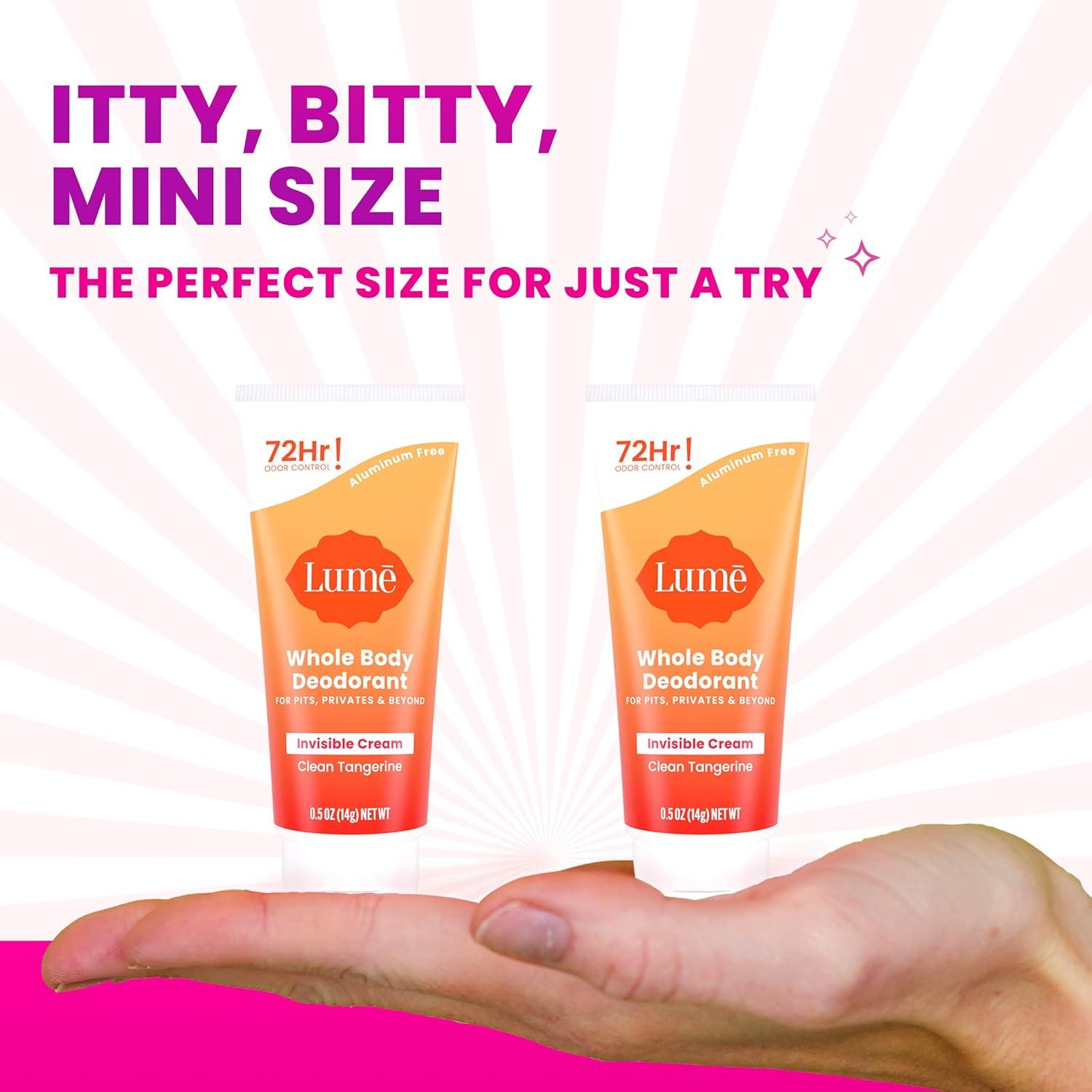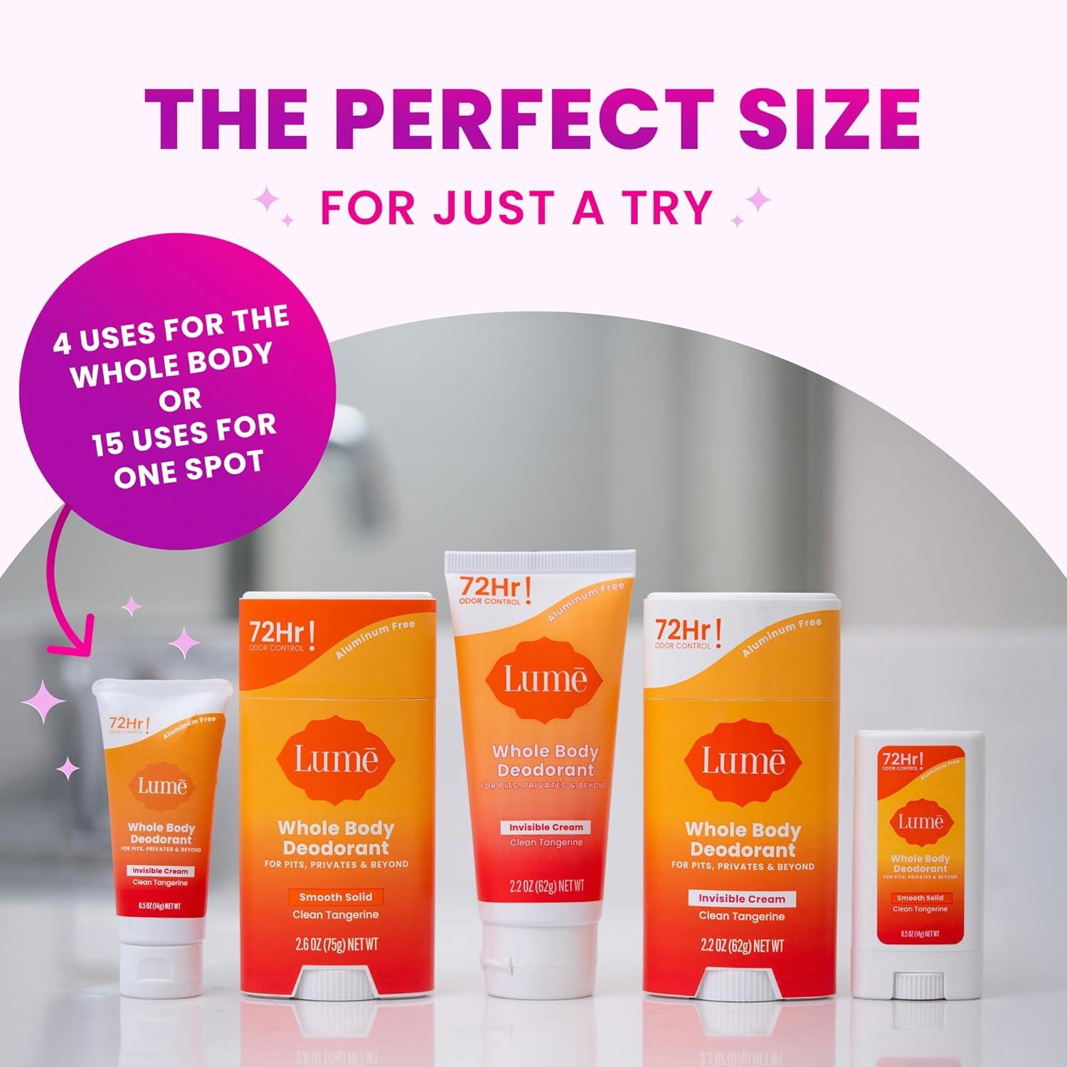 Lume Whole Body Deodorant 5 Pack Sampler – Invisible Cream Minis – 72 Hour Odor Control – Aluminum & Baking Soda Free (Clean Tangerine, Lavender Sage, Peony Rose, Toasted Coconut, Unscented)(Clean Tangerine)