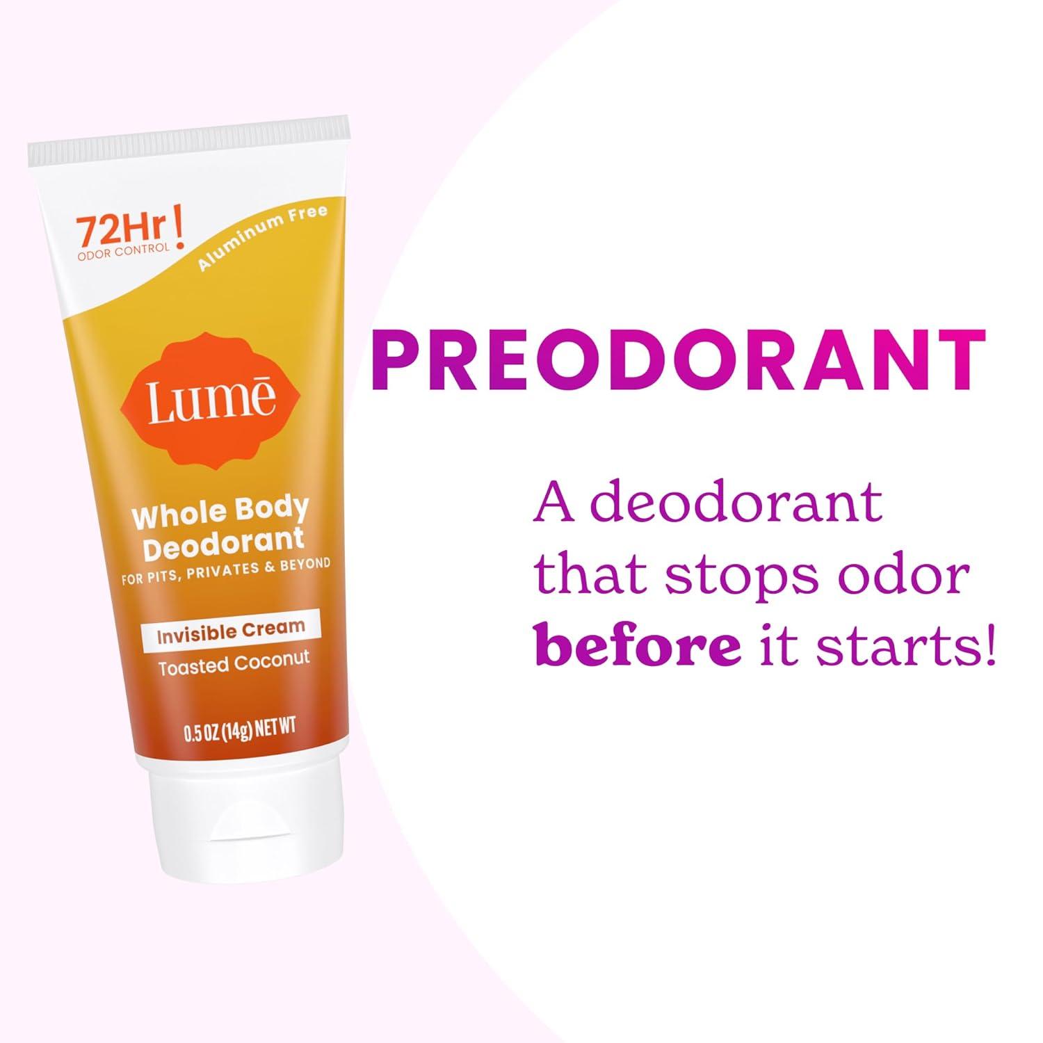 Lume Whole Body Deodorant 5 Pack Sampler – Invisible Cream Minis – 72 Hour Odor Control – Aluminum & Baking Soda Free (Clean Tangerine, Lavender Sage, Peony Rose, Toasted Coconut, Unscented)(Toasted Coconut)