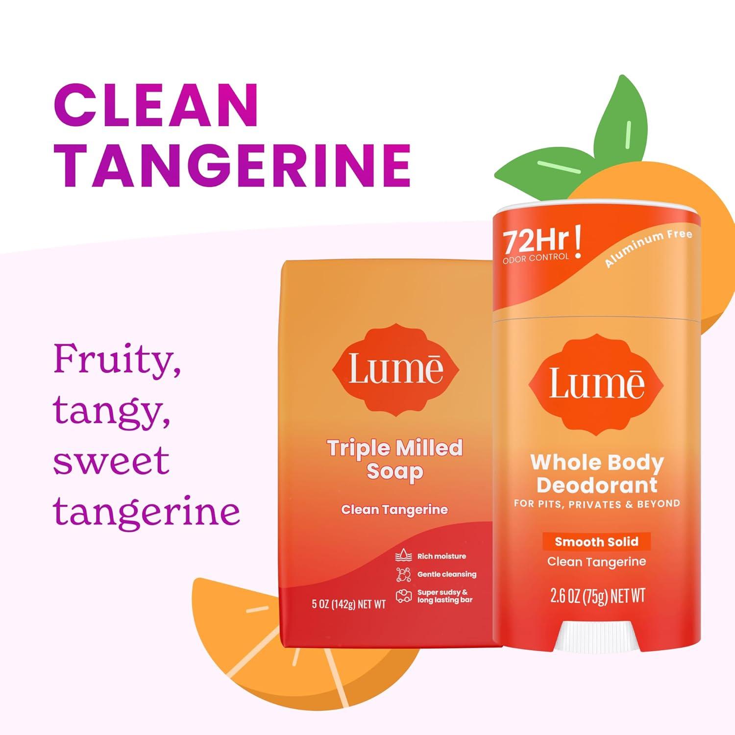 Lume Whole Body Deodorant And Soap – 2.6 Ounce Smooth Solid Stick With 72 Hour Odor Control (Pack of 2) and 5 Ounce Triple Milled Soap (Pack of 2) – Aluminum and Baking Soda Free (Lavender Sage)(Clean Tangerine)