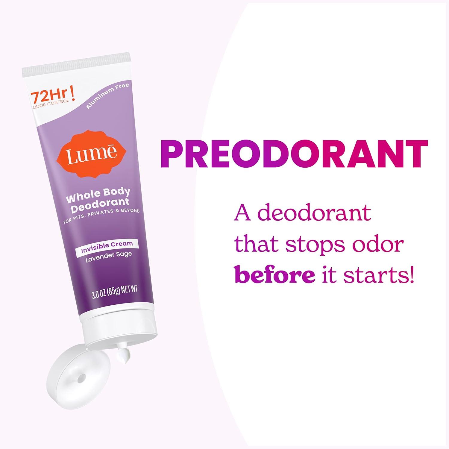 Lume Whole Body Deodorant – Invisible Cream Tube – 72 Hour Odor Control – Aluminum Free, Baking Soda Free, Skin Safe – 3.0 ounce (Pack of 2) (Toasted Coconut)(Lavender Sage)