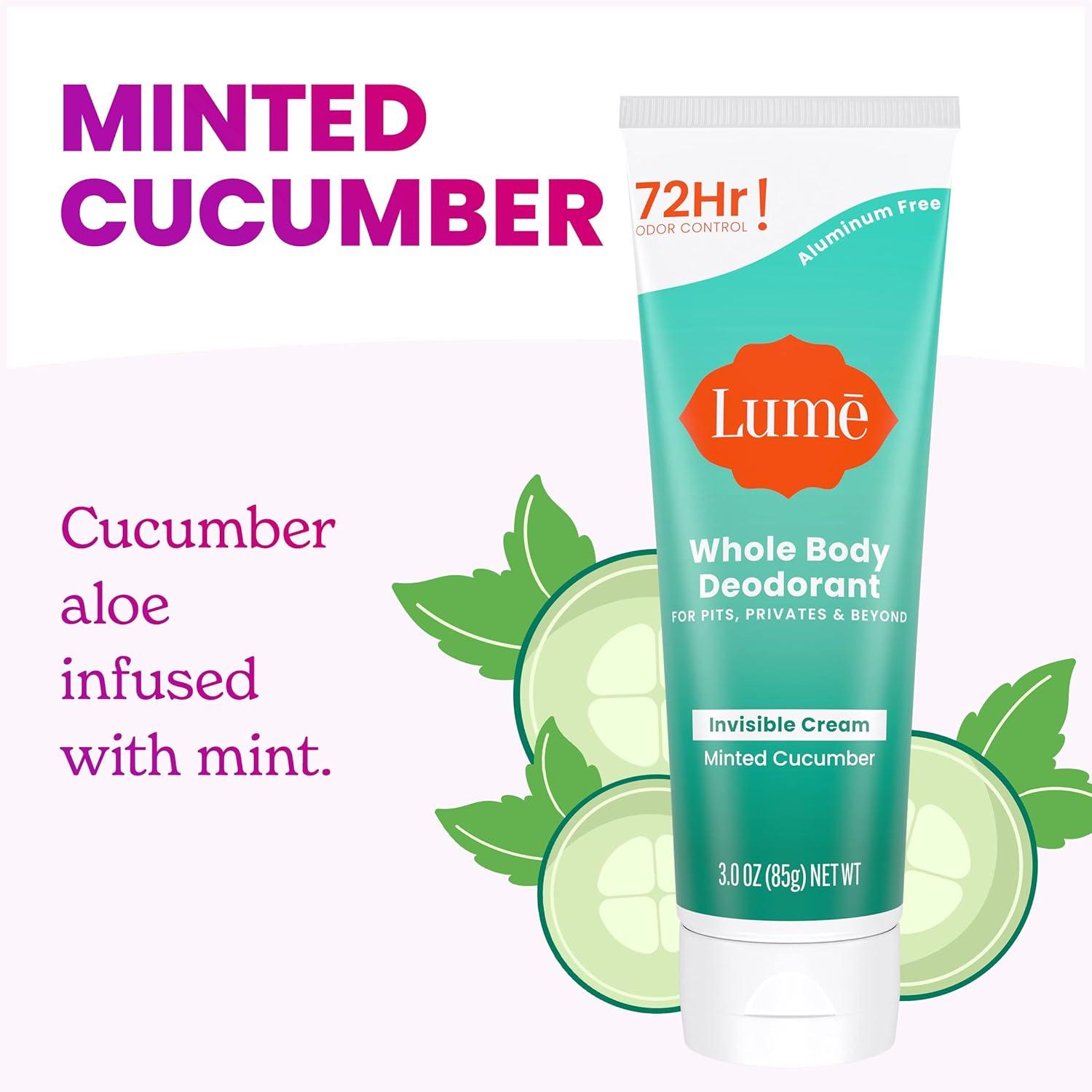 Lume Whole Body Deodorant – Invisible Cream Tube – 72 Hour Odor Control – Aluminum Free, Baking Soda Free, Skin Safe – 3.0 ounce (Pack of 2) (Toasted Coconut)(Minted Cucumber)