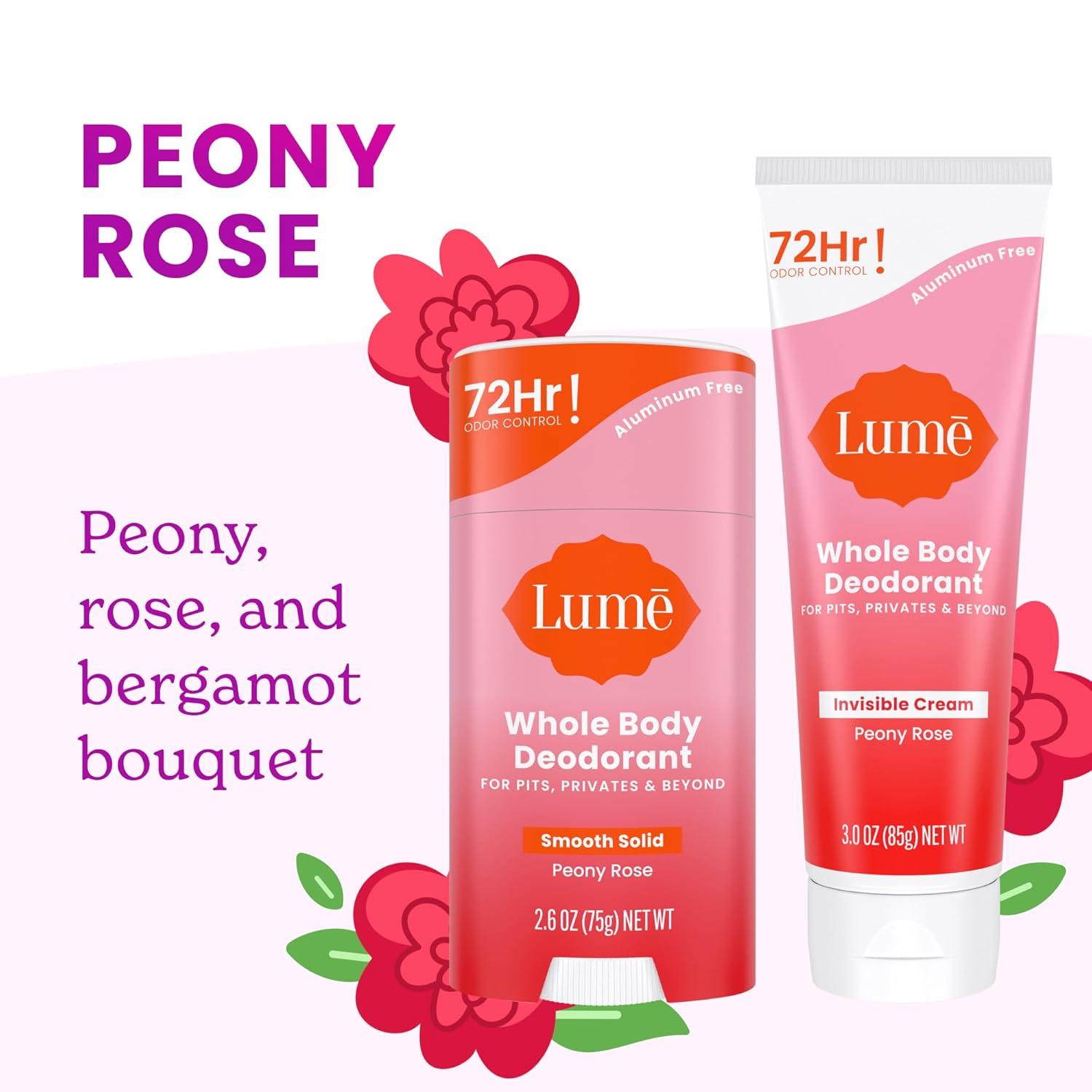 Lume Whole Body Deodorant – Invisible Cream Tube and Solid Stick – 72 Hour Odor Control – Aluminum Free, Baking Soda Free, Skin Safe – 3.0 Ounce 2.6 Ounce Bundle (Toasted Coconut)(Peony Rose)