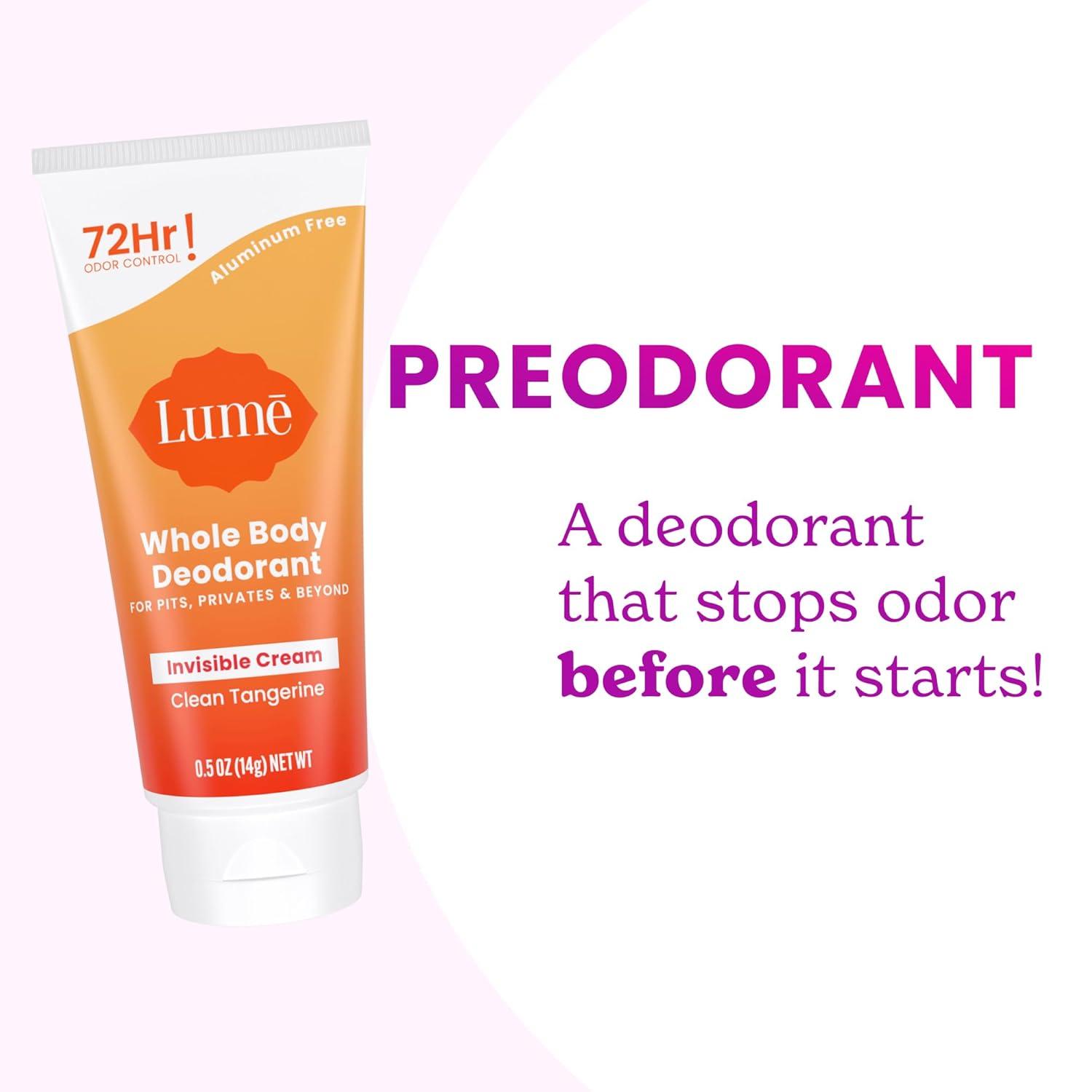 Lume Whole Body Deodorant – Mini Travel Size Invisible Cream Tube – Trial Size – 72 Hour Odor Control – Doctor Developed – Aluminum Free, Baking Soda Free – .5oz (Pack of 2) (Lavender Sage)(Clean Tangerine)