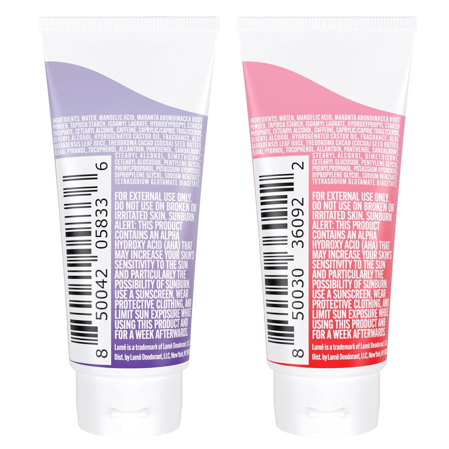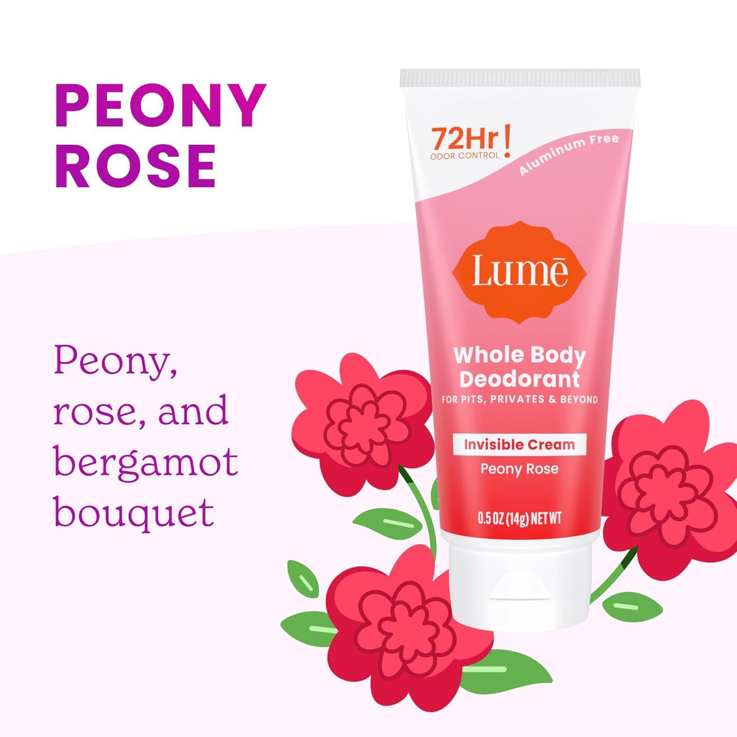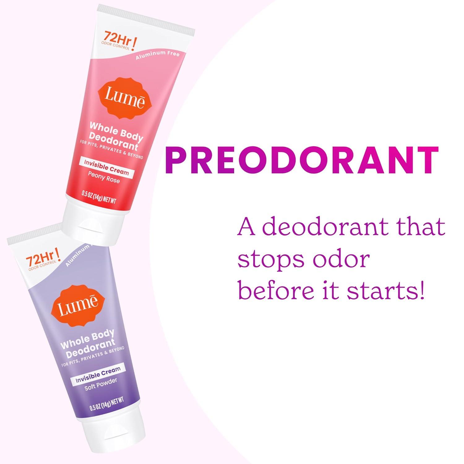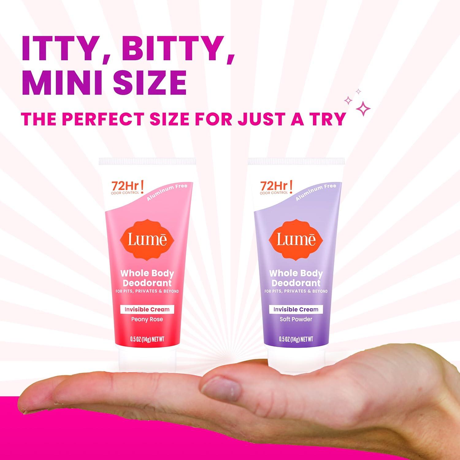 Lume Whole Body Deodorant – Mini Travel Size Invisible Cream Tube – Trial Size – 72 Hour Odor Control – Doctor Developed – Aluminum Free, Baking Soda Free – .5oz (Pack of 2) (Lavender Sage)(Soft Powder & Peony Rose)