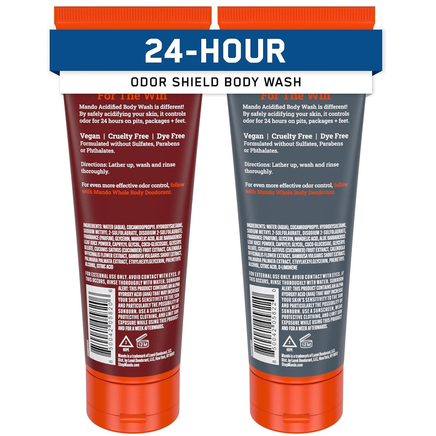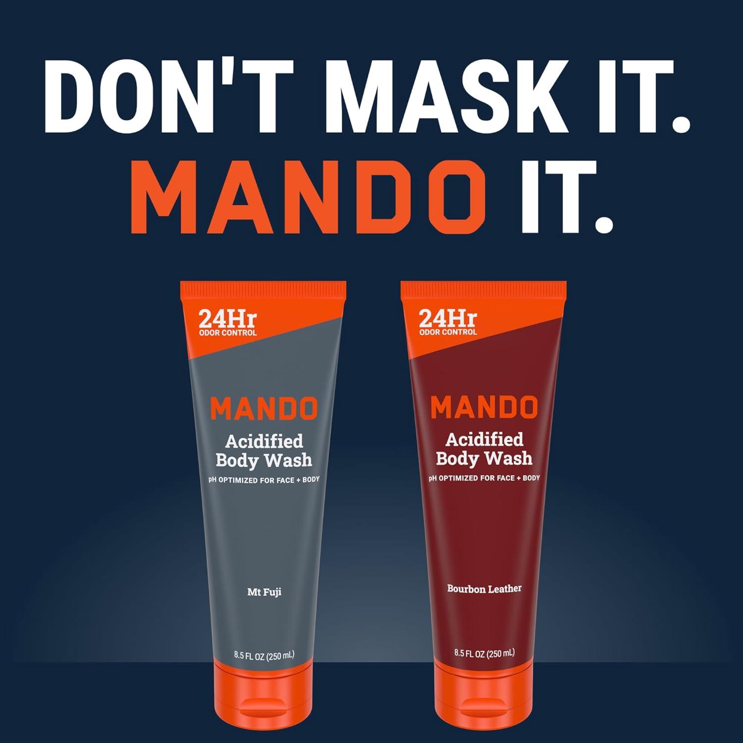 Mando Odor Shield Body Wash – 24 Hour Control – Removes Odor Better than Soap – SLS and Paraben Free, Skin Safe – 8.5 Ounce (Pro Sport)(Bourbon Leather & Mt Fuji)
