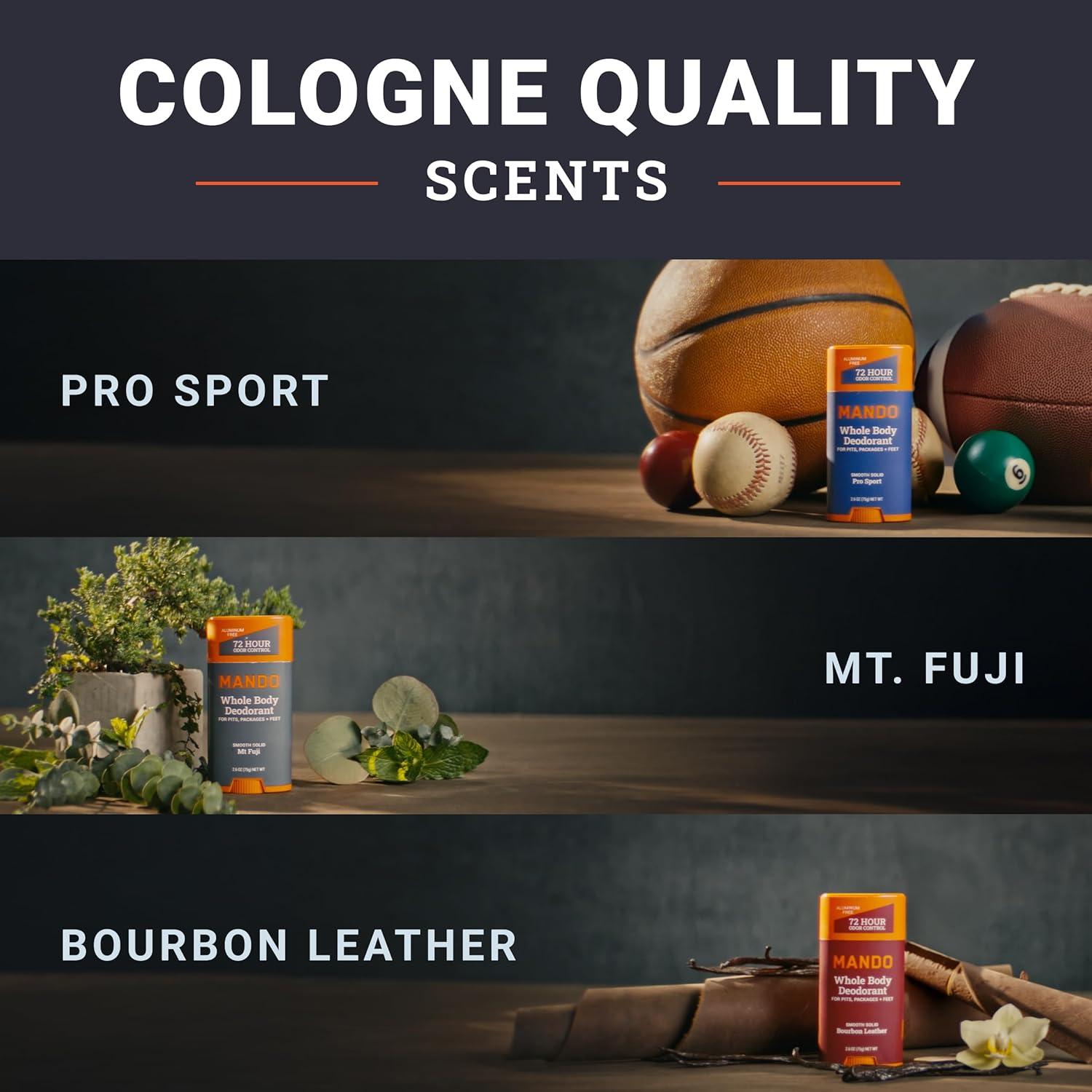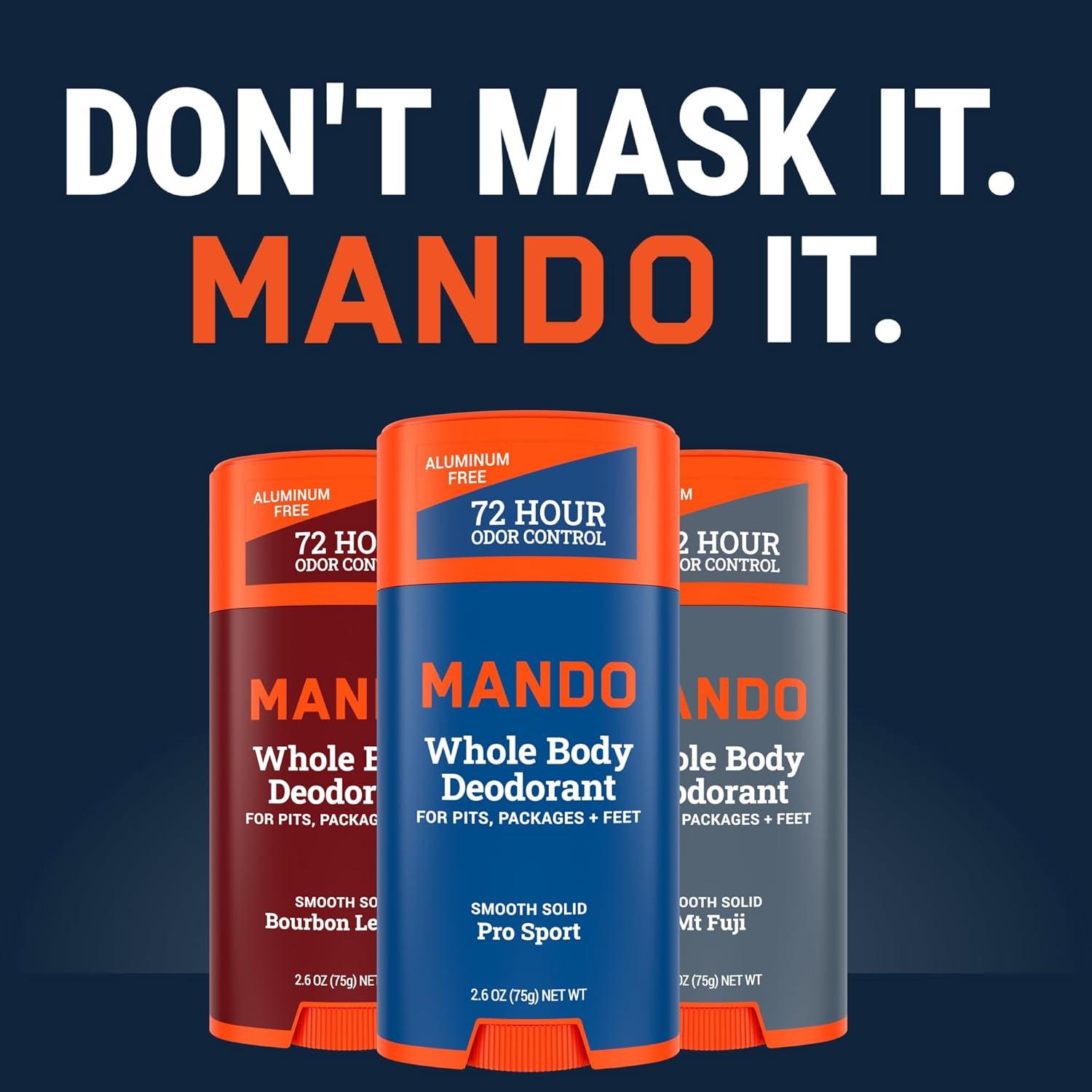 Mando Whole Body Deodorant For Men – Smooth Solid Stick – 72 Hour Odor Control – Aluminum Free, Baking Soda Free, Skin Safe – 2.6 ounce (Pack of 2) – Pro Sport(Bourbon Leather Pro Sport Mt Fuji)